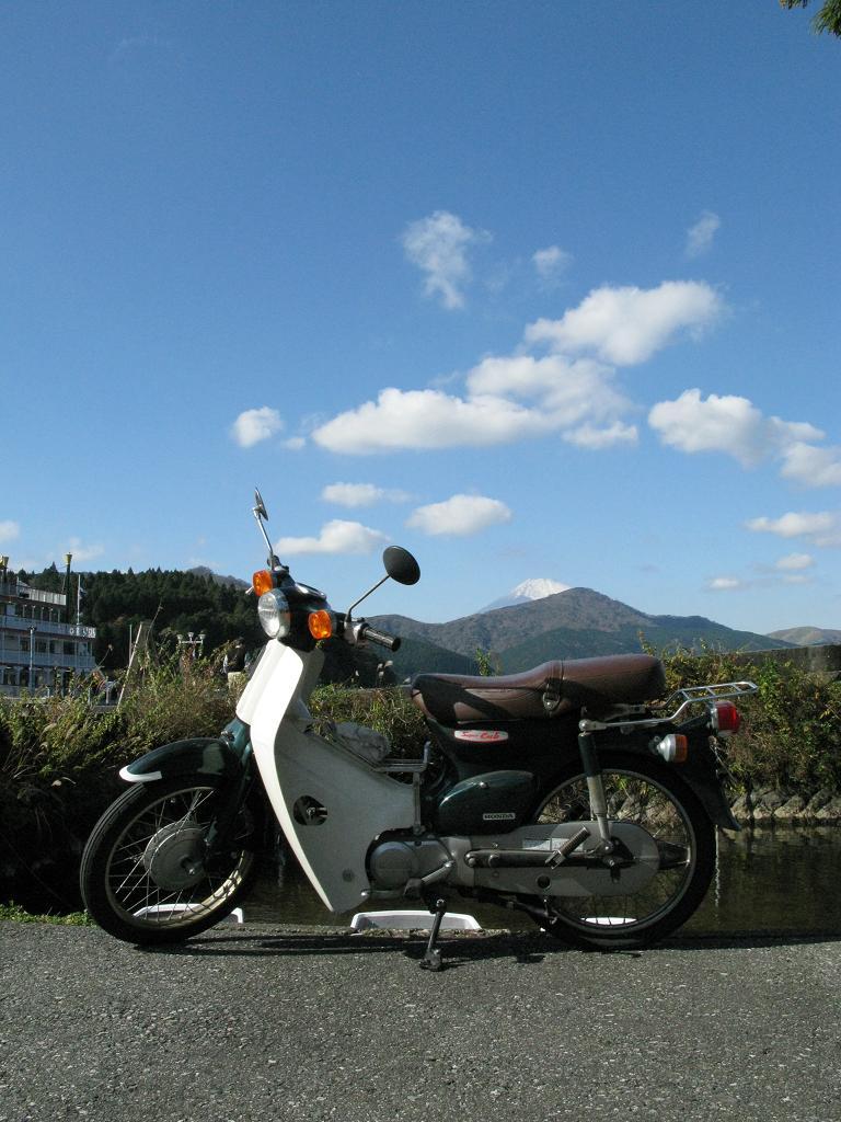 ▼他の2名は125cc以上である為、高速その他有料道路が使えない筆者(勿論、SuperCub90。実際には85ccだが、気付けば絶版車である。)とはスタート時間をずらし、箱根湯本で集合とする。